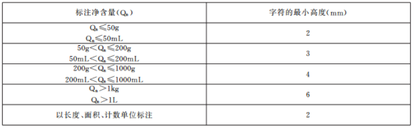 第六条 定量包装商品净含量标注字符的最小高度应当符合本办法附件2的规定。