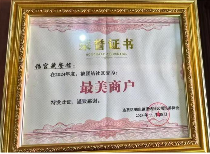 餐馆严格把控食品安全,确保食材新鲜健康,同时营造干净整洁、服务周到的用餐环境。同时积极履行社会责任,解决2名退伍军人及2名扶贫搬迁群众就业问题,在经营过程中,长期为现役及退伍军人提供用餐8折优惠。自2023年10月起,餐馆还定期慰问退伍孤寡及贫困老人,发放慰问品与慰问金,传递温暖。达孜福宫藏餐馆持续发扬军人精神,坚守初心,不断提升服务质量与菜品水平,力争做大做强。未来,达孜福宫藏餐馆将持续关注公益事业,为达孜区经济发展与退伍军人事业贡献力量。