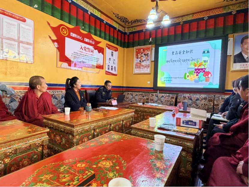 市市场监管局机关党委、各党支部围绕食品、药品、工业产品、特种设备“四大安全”、消费维权等职责职能,开展“三个意识”和民生领域市场监管相关知识宣传活动,发放网络订餐指南、食品安全法、用药安全等藏汉双语宣传手册、宣传单300余份,各类普法宣传品350余份,深受僧尼欢迎。宣讲人员还检查了寺庙食堂食品安全、寺庙用电安全以及寺庙内及周边经营主体。