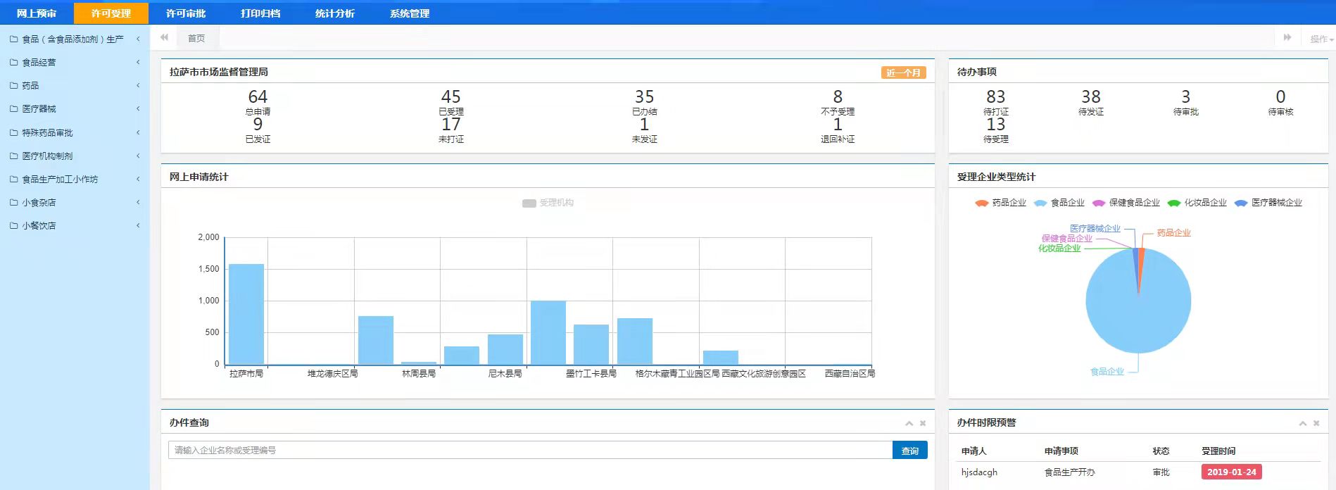按照自治区党委政府和市委市政府做好13项民生实事的要求,拉萨市市场监督管理局党组副书记、局长次仁卓嘎组织专题会议做出安排部署,立即启动食品检验体系和智慧食安体系试点建设工作。按照统一安排,我局参照深圳、北京等国内最先进的标准和模板,在拉萨市金珠西路金和夺底路正在建设两个食品快检站,编制了《拉萨市市场监督管理局智慧食安信息化平台项目初设》,已进入发改委评审阶段。