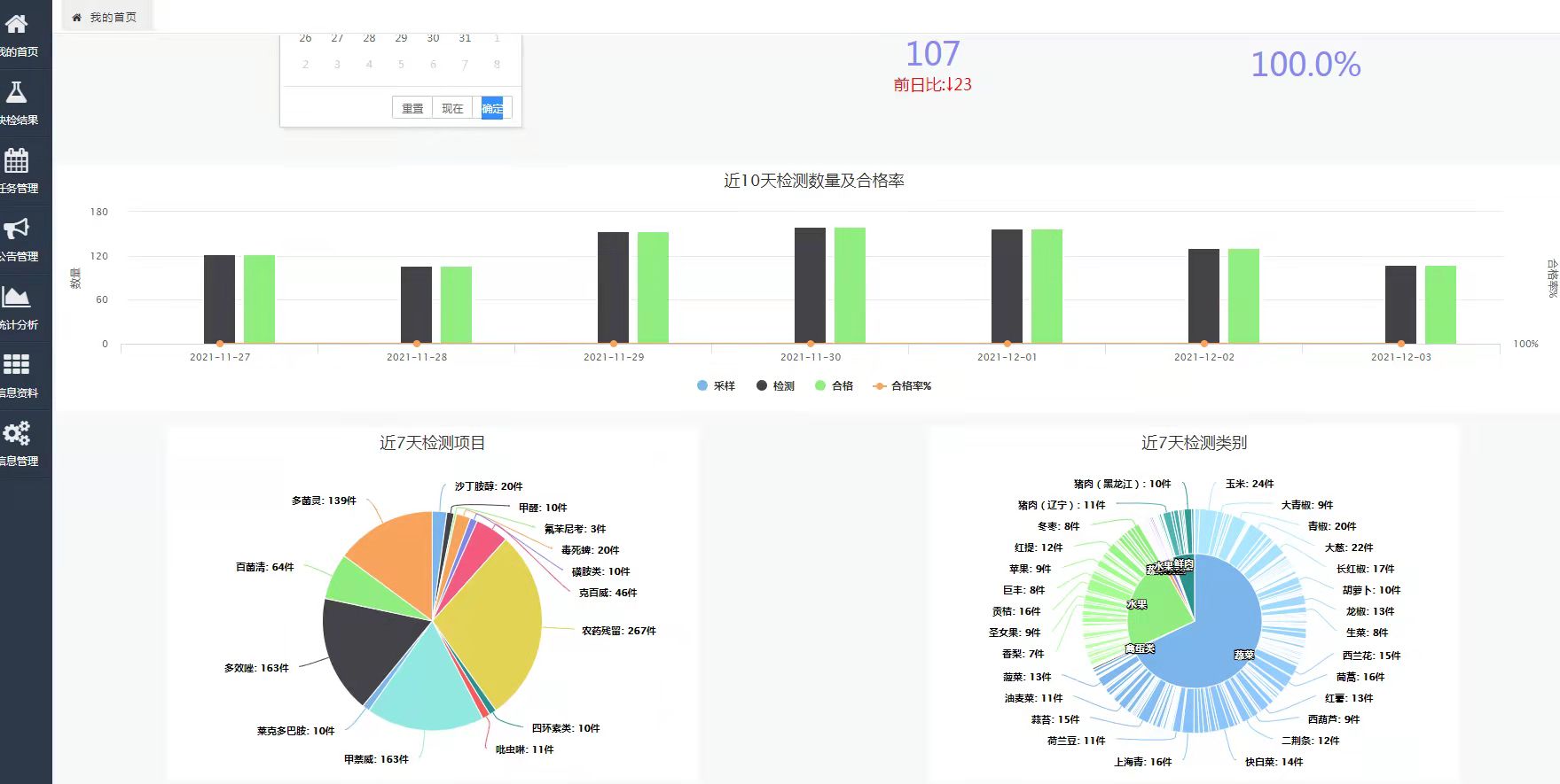 “一中心两市场多站点”的食品检验检测体系基本建成。目前市级食品检验中心已经获得实验资质认证,已经开展监督检验、风险监测和快检结果比对工作;两个一级农贸市已经建立功能完备的快检室,对进入市场的食用农产品开展凡进必检、应检尽检的工作,数据实时上传到两级监管部门;各县(区)利用快检车,对辖区开展食品巡检及应急保障检验工作;二级农贸市对市场上销售的高风险食用农产品开展快检工作;即将投入使用的两个食品快检站针对辖区内商超、农贸市场、批发市场等场所进行抽样检测,开展你点我检,你送我检的活动,既负责日常的样品接收、样品前处理、快检实验、结果报送等工作,打通了农贸市场批发、销售、消费全链条安全通道。同时起到食品安全宣教站的作用,为市民免费进行食品安全知识教育和食品安全相关法律法规的宣传等。
